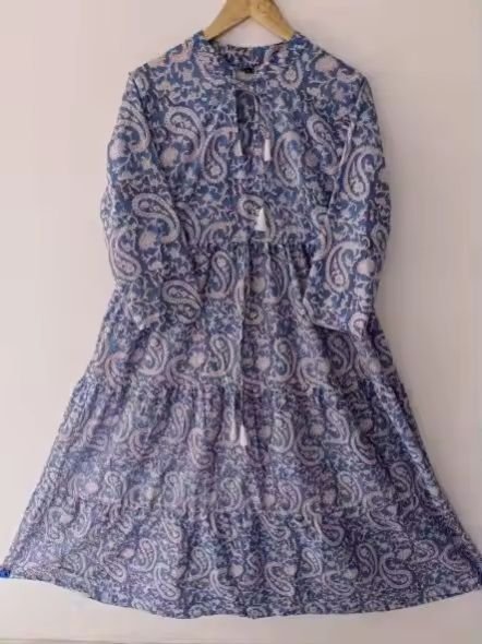 Women Block Floral Printed Long Sleeve Cotton Dress